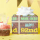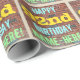 Este divertido diseño de papel de regalo con tema de cumpleaños presenta un mensaje como "¡FELIZ CUMPLEAÑOS NÚMERO 92, NOMBRE-AQUÍ!", donde el nombre se puede personalizar. El fondo presenta una representación de un muro de ladrillos que consiste en algunos ladrillos de color marrón rojizo. El texto del mensaje personalizable presenta colores como azul, amarillo y verde, y tiene una apariencia inspirada en la de grafitis pintados. Papel de regalo como este podría ser utilizado quizás al envolver regalos de cumpleaños que se le dan a alguien que está celebrando su cumpleaños número noventa y dos. [~Z0000274]