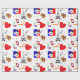 Un adorable patrón de la Francia de París con vino francés, uvas, hombre con bigotes en su boina, Torre Eiffel, salchichas, bandera francesa y corazones rojos de color marica; un diseño tan divertido.
