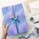 Parkles azules y morados con pequeñas ráfagas de copas de nieve crean un agradable ambiente invernal. Con un diseño festivo y acentos coloridos, este papel de envolver es perfecto para celebrar las fiestas.