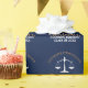 Este papel de envolvimiento para la fiesta de graduación de la escuela de derecho moda azul marino y personalizado de oro presenta tipografía elegante para una clase de graduados en 2025. Personalizar con tu año de graduación bajo la balanza blanca de la justicia para grandes regalos personalizados de abogado o abogado.
