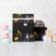 Diseño juguetón de notas musicales, de personales y de clefs multicolores en fondo negro