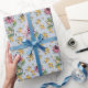 Papel De Regalo Pastel Blue Queen Bee, Honeycomb y Flores Exóticas