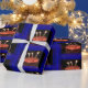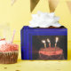 Captura de un pastel de cumpleaños con un marco azul con velas ardiendo de llamas. Eso es brillante y colorido. Eso fue en Sterling Kansas USA. Eso es en PAPEL DE RAPAS.