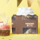 Papel de envoltura de cumpleaños con un pastel de cumpleaños gatito con "cumpleaños feliz", letra negrita con mayúsculas. Personalizar agregando tu(s) nombre(s).