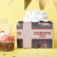 Papel de envoltura de cumpleaños con un pequeño pastel de cumpleaños de la cabeza de turco roja con "cumpleaños feliz", letra negrita con mayúsculas. Personalizar agregando tu(s) nombre(s).