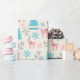 Papel De Regalo Pastel de reno rosa Blue Pine Treps Snowflakes