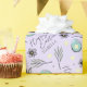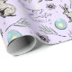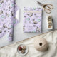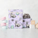 Este lindo pastel morado feliz conejo de Pascua envuelto de papel para niños presenta ilustraciones hechos a mano con tinta negra de conejitos, hojas y flores en un suave fondo púrpura pastel. Personaliza con el nombre del niño.
