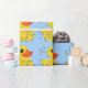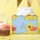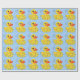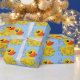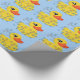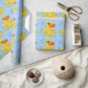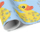 Adorable papel de regalo para fiesta de bebé y fiesta con burbujas azules y pato de goma amarillo brillante.