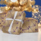 Papel de envolver con lámina art déco púrpura y dorada.