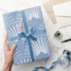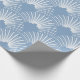 Patrón geométrico azul art decó sobre un fondo blanco.
