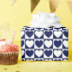 Papel de envoltura construido con un patrón a cuadros azul marino y blanco con corazones de gran tamaño. Personalizar el color de fondo blanco entre varias opciones.