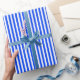 Papel De Regalo Patrón azul y blanco de rayas verticales