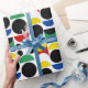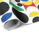 Impresionante repetición geométrica Escandinavia estilo bauhaus nórdico a mediados de siglo Círculos rojos, negros, amarillos, azules y verdes y formas de semicírculo Decorativo Diseño de patrones modernos sobre fondo blanco