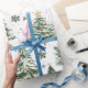 Sea un poco más divertido con sus pinos envueltos en papel cuando utilice este patrón festivo. Las bonitas acuarelas de color verde vintage se mezclan con toques agradables. Están decorados para las vacaciones de los Navidades con estrellas en la parte superior, una pizca de baubles rojos y copos de nieve de pino verde. Todo sobre un fondo blanco y nevado de bonito.