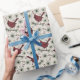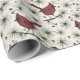 Este elegante papel de envoltura de invierno presenta un patrón de pájaros cardinales rojos dibujados a mano sobre ramas de pino.