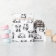 Este lindo patrón neutral de género presenta pandas estilo doodle en varias poses sobre fondo blanco.