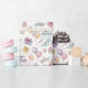 Trae un toque mágico a cada celebración con este diseño de cumpleaños de acuarela. Con castillos, coronas, varas, tacones altos, globos, quequitos, regalos y el texto festivo "Feliz Cumpleaños", este patrón encantador es perfecto para envolver regalos con estilo y alegría.