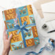Envuelve tus regalos con este patrón de amor de mariposa | Papel de ajuste de gradientes azul y Naranja. Un hermoso patrón geométrico de cuadrados de mariposa alternando con la palabra: Amor. Un gran papel de envoltura para los amantes de las mariposas.