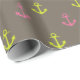 Papel De Regalo Patrón de anclas náuticas marrones y verdes rosado