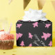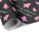 Papel de envolvimiento de vacaciones personalizado con forma de árboles de Navidad rosados. Rollos personalizados de envoltura de regalo con su saludo y nombre. Color de fondo negro o personalizado. Diseño divertido de x-mas para regalos. Adecuado para niños y adultos.