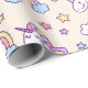 Kawaii chubby volando unicornios patrón arcoiris papel de envoltura pastel