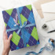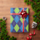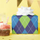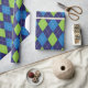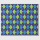 Papel de envoltura azul marino, azul cielo y verde lima.