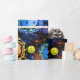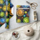 Un diseño fresco y colorido que representa un patrón de bolas de picnic rodeado de energía en espiral.