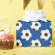 Patrón de bolas de fútbol con un hermoso fondo azul para los amantes del fútbol y los niños, y todos están disponibles en varios otros colores hermosos.