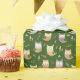 Perfecto para los amantes de las lechuzas, esta decoración adorable se caracteriza por sus adorables búhos pastel sobre un fondo verde. También hay setas y vegetación. Este papel de envoltura es una gran adición a un fiesta de cumpleaños o una ducha de bebé con temática de bosques.