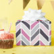 Envoltura de regalo de patrón de chevron geométrico en acentos de morado, rosa y gris.