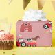 Un lindo animal de granja y diseño de corral de tractor rojo con un fondo rosado. Los animales de granja incluidos en este diseño son cabras, vacas, caballos, patos, ovejas y cerdos. El perfecto diseño de un patio de chica para los amantes de las granjas.