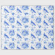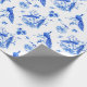 Envoltura de regalo de estilo chinoiserie real azul pavo real, azul y blanco.