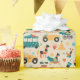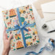 Este papel de envoltura es genial para los niños. Presenta un patrón de objetos y símbolos relacionados con el circo.