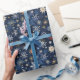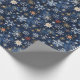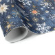 Papel De Regalo Patrón De Copo De Nieve Azul Y Oro Con Estrellas