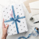 Patrón de estrellas de copos de nieve en blanco y negro lindos Papel de regalo de Navidad Vacaciones de Navidad