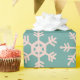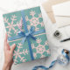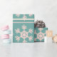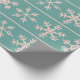 Un patrón impecable con delicados copos de nieve dispuestos en filas horizontales con un suave fondo verde azulado. Los copos de nieve son de color rosa claro, lo que confiere al diseño una estética agradable y pastel que se caracteriza por su invierno y su ambiente acogedor. Ideal para añadir un sutil toque de encanto festivo con un toque moderno.
