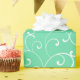 Un diseño moderno y caprichoso, con motivos de rizo blanco y un fondo acuático.