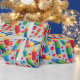 Este es un lindo y colorido papel de envoltura que presenta un patrón de plumas de crayón coloridas.