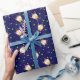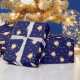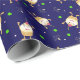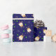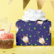 Papel envuelto con divertidos patrones de cupcakes sobre fondo azul oscuro