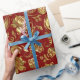 Papel De Regalo Patrón de Damasco dorado brillante y rojo marrón