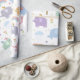 Dale a tu pequeño su adorable patrón de elefantes pastel con este adorable papel de envoltura. El envoltorio de regalo tiene elefantes morados, azules, rosados y amarillos y el nombre de su pequeño hijo. También hay arcos de lluvia, pájaros, nubes, corazones y flores. Este papel de envoltura monogramado personalizado hace una gran adición a un regalo para una ducha de bebé, fiesta de cumpleaños, Navidades u otra celebración de vacaciones.