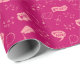 Papel de envoltura divertido y extravagante con ilustracion a mano de graduación y motivos relacionados con la escuela en rosa.