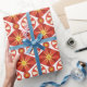 Papel de envolver con patrón de explosión de estrellas geométricas abstractas rojas retro
