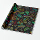 Patrón de Fiesta de Arte de la Línea México alegre y colorido, compuesto por elementos típicos como calaveras de azúcar, maracas, guerrero inca, guerrero azteca, pimienta chile, cactus, pirámide, cal, tequila, sombrero, tacos, un camaleón, elementos florales étnicos y decorativos. Original Vector Art Copyright BluedarkArt.