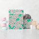 Papel De Regalo Patrón de flores Art Decó - blanco sobre turquesa