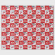 Papel de envoltura rojo y blanco personalizado "Feliz Navidad" con el nombre de la familia, 2 fotos de personalizados y un patrón de árbol. Ideal para terminar sus regalos de Navidad en invierno y en temporada de vacaciones.