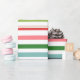 Una tira de colores moderna y bonita es una buena manera de darle un toque divertido a su envoltura de regalo. En este rollo de papel de envoltura, los tonos vivos y a la moda son el verde limón, el agua, el verde oscuro, el rosa rosado y el rojo clásico. El sencillo pero colorido patrón de envoltura de regalo es ideal para cualquier destinatario. Arriba con un arco en un tono de coordinación para dar a tus regalos envueltos un aspecto final muy elegante.