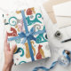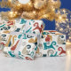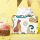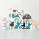 Gatos geométricos en una agradable paleta de turquesa y varilla dorada sobre un fondo blanco roto.