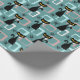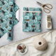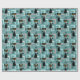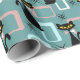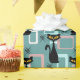 Colorido patrón de estilo abstracto de mediados de siglo con gato negro, estrellas negras y cubos coloridos (azul, blanco, rosa) con fondo turquesa para cada amante del gato, mamá del gato y papá del gato.