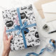 Personalizado como gráfico, caras de gatos negros y gatos blancos, patrón de repetición sin fisuras
